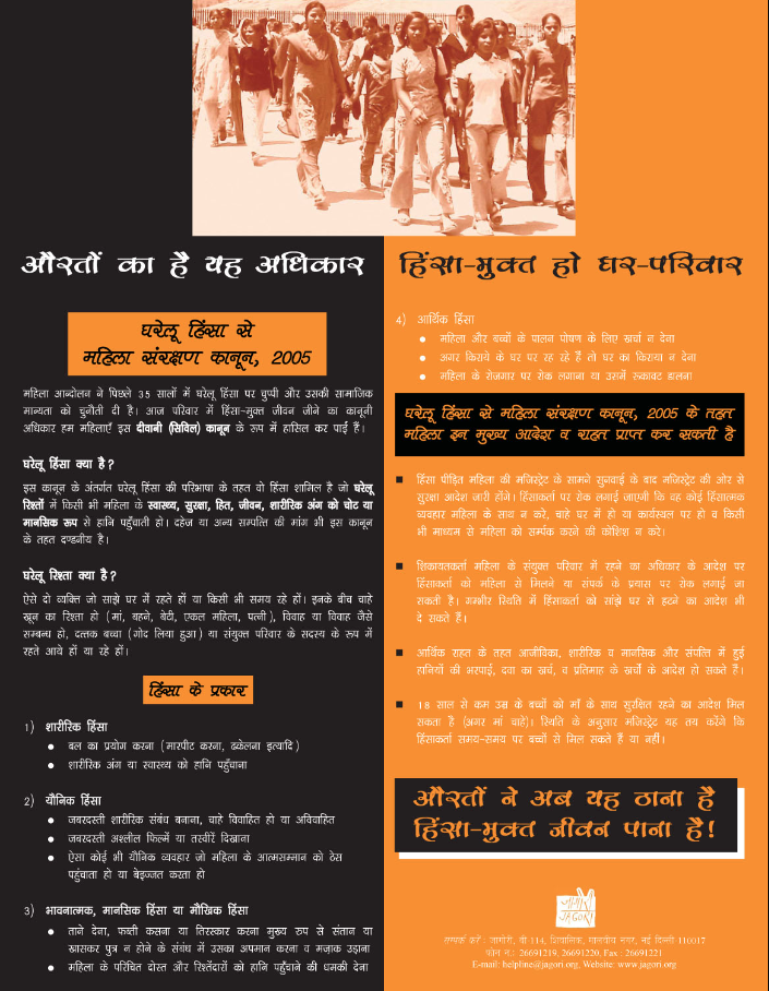 This document has been conceptualized with the objective to a) share experiences of women facing violence, how they challenged existing patriarchal systems and evolved as ‘survivors’ and b) to provide information about rights and laws available to women in a trying circumstances. The five cases we highlight in this document reiterate that violence is inextricably woven into the everyday lives of these women. The agents of violence could well be located within families or outside in unfamiliar domains. |