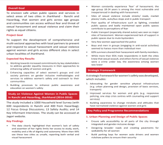 This is a broad introduction to the process of creating safe cities for women and girls. It introduces the key concepts of safe cities and offers practical tools for how to begin building a safer, more inclusive city. The information in this guide combines knowledge from scholarly research with insights from on-the-ground work around the world, with particular focus on JAGORI’s work in India. In the six years of work on this issue, we have learnt that it is possible to make cities safer for women and girls. |