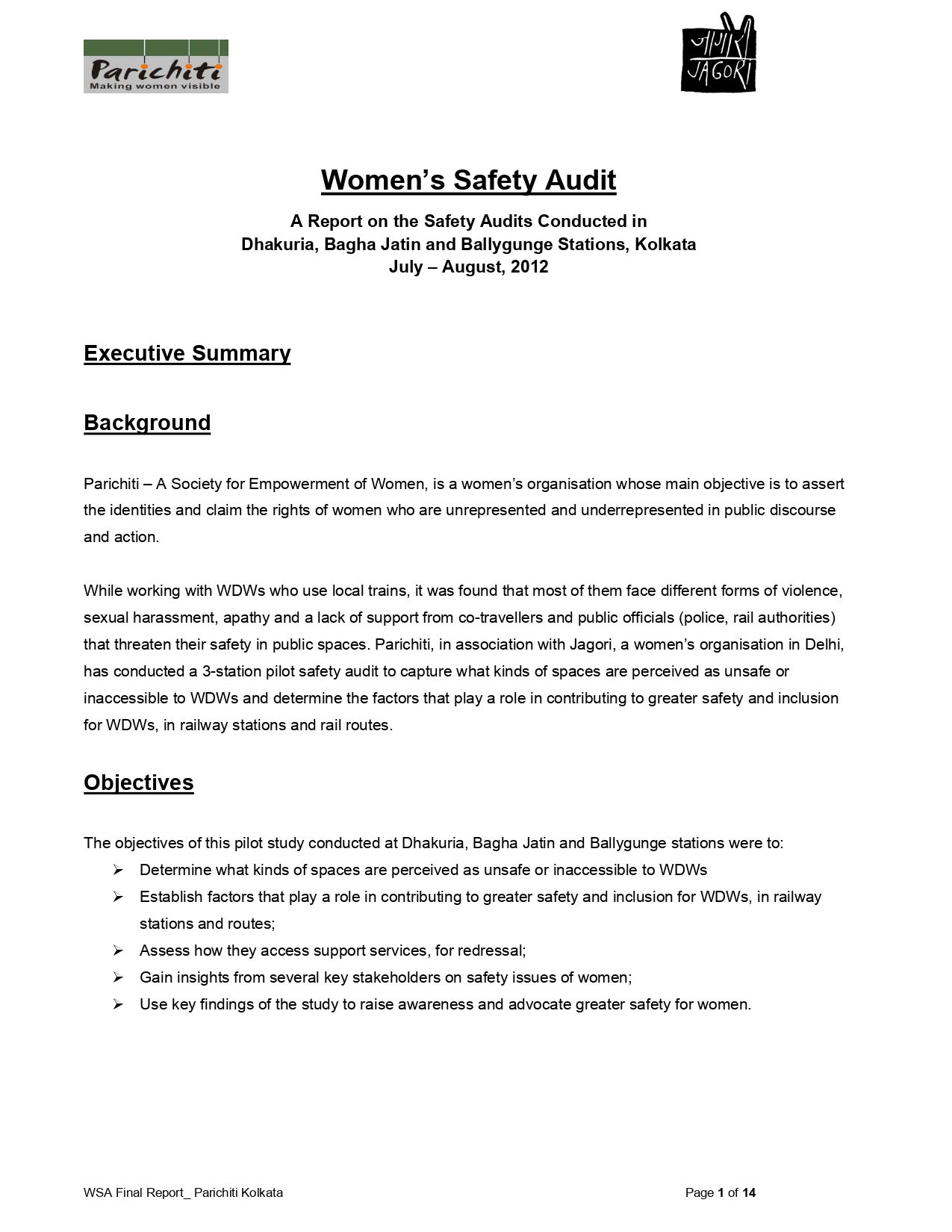 National Workshop on Safer Cities for Women: Perspectives, Methodology and Tools: A Report